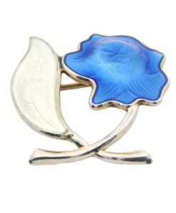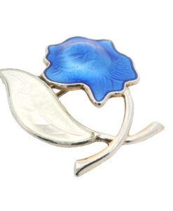 This sterling silver flower brooch by Arne Nordlie reflects both the fine craftsmanship and the elegant, clean design typical of Norwegian silver jewellery. With blue and white guilloche enamel work, it demonstrates the delicate, intricate patterns that make guilloche enamel so desirable.