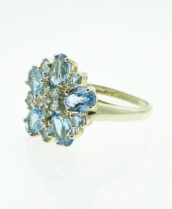 This sensational Blue Topaz and Diamond cluster ring crafted in 9ct yellow gold.