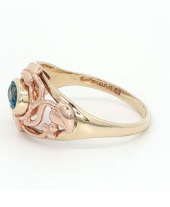 Cymru 9ct Yellow & Welsh Rose Gold Tree of Life Birthstone Ring with Blue Topaz