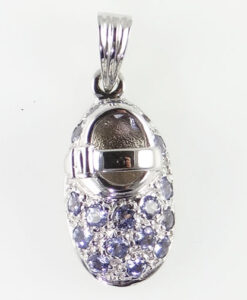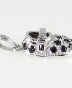 9ct White Gold Sapphire Baby Shoe Pendant Charm