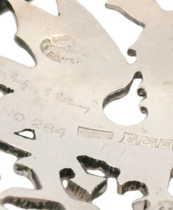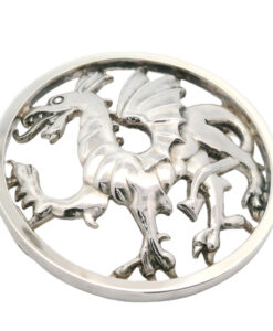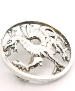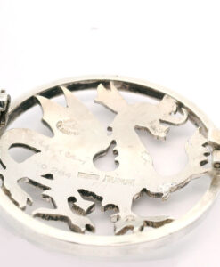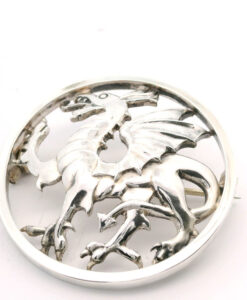 A rare sterling silver Welsh dragon brooch by the designer and silver smith Geoffrey G Bellamy. It was made for the retailer George Tarratt jewellers.