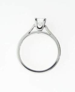 This is a stunning diamond solitaire engagement ring crafted in polished platinum.