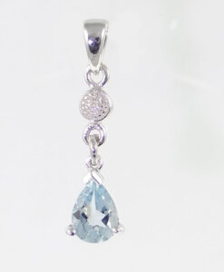This is a beautiful Sterling Silver pendant set with pear-shaped Blue Topaz drop and a sparkling accent Diamond.