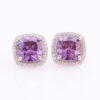 Silver Pink and White Cubic Zirconia Halo Earrings