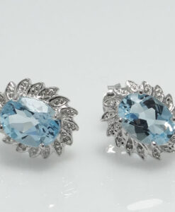 A sparkling pair of Sterling Silver Blue Topaz & Diamond frill edge earrings.