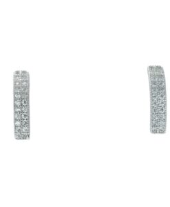 Sterling Silver Curved Bar Earrings with Pave Set Cubic Zirconia