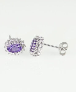 Silver Amethyst Heart and Diamond Earrings