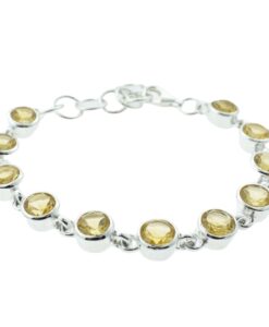 Solid 925 Sterling Silver Round Citrine Bracelet with lobster fastener