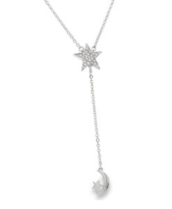 Embrace celestial charm with our Moon and Star necklace, beautifully crafted in 925 sterling silver. This elegant piece features a shimmering Cubic Zirconia star charm, paired with a delicate dangling moon and star for a graceful, layered look. The 42cm / 16-inch chain includes a 3cm extender, offering both style and adjustable comfort.