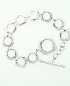 An authentic Tiffany & Co. Sterling Silver Square Box Cushion Link Toggle Bracelet. This is a rare bracelet from the 1990’s. It has been polished. It is excellent condition. It comes with a Tiffany pouch and would make an impressive gift or addition to any fine collection.