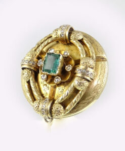Victorian 18ct Gold Diamond & Emerald Brooch c1840-50