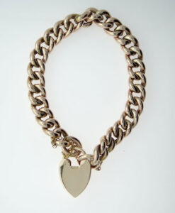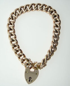 Victorian 9ct Rose Gold Curb Bracelet circa 1900 It has a padlock fastener and safety chain.
