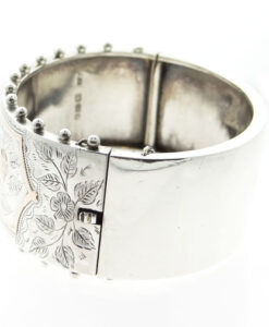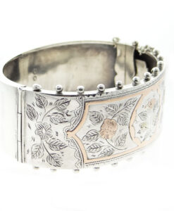 Victorian Rose Gold and Sterling Silver Half Engraved Bangle – Hallmarked 1884