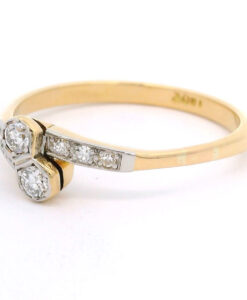 Vintage 18ct Gold Two Stone Diamond Crossover Ring with diamond set shoulders c1940