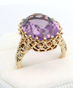 Vintage 9ct Gold Amethyst Statement Ring dated 1973