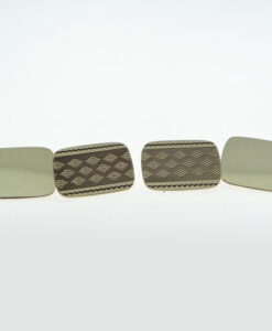 They are rectangular and have an engine turned pattern on one plate.
