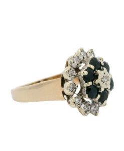 Vintage 9ct Gold Diamond and Sapphire Cluster Ring hallmarked Birmingham 1981