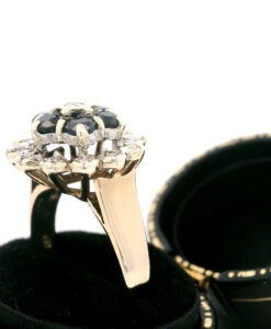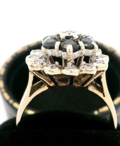 Vintage 9ct Gold Diamond and Sapphire Cluster Ring dated 1981