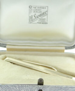 A fabulous 9ct Gold Diamond Cut Tie Slide from the 1950’s. It is in perfect condition and comes in the original box from H.Samuel, Manchester, England.