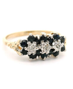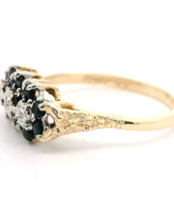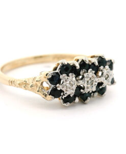Vintage 9ct Gold Diamond & Sapphire Cluster Ring