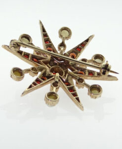 Vintage 9ct Gold Garnet and Seed Pearl Starburst Brooch