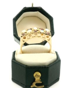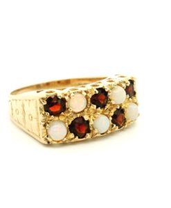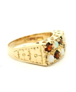 Vintage 9ct Gold Opal & Garnet Two Row Cluster Ring dated 1977