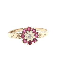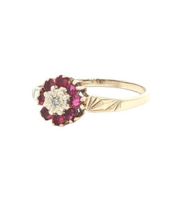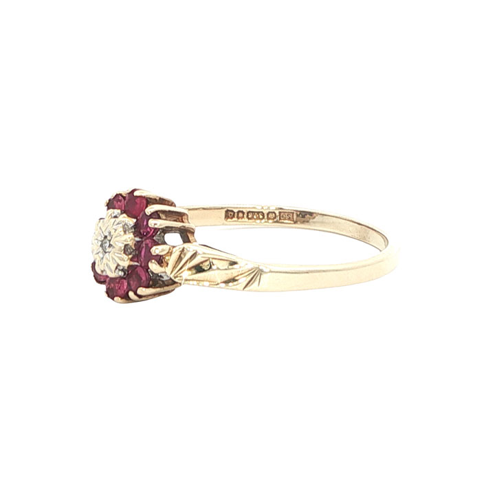 Vintage 9ct Gold Ruby and Diamond Cluster Ring