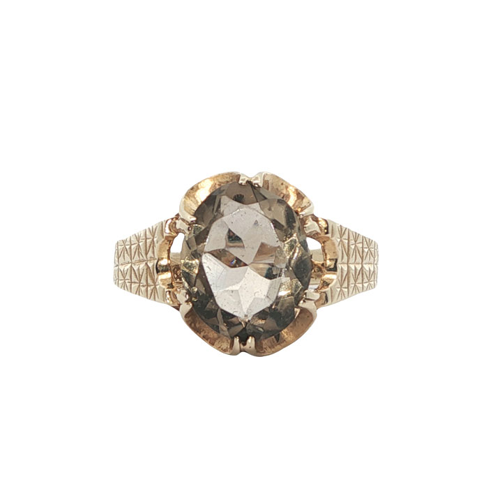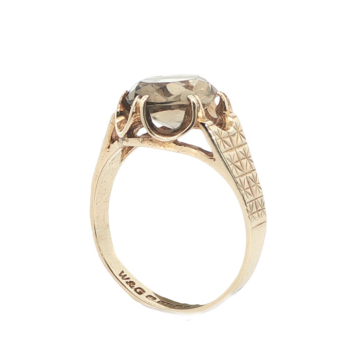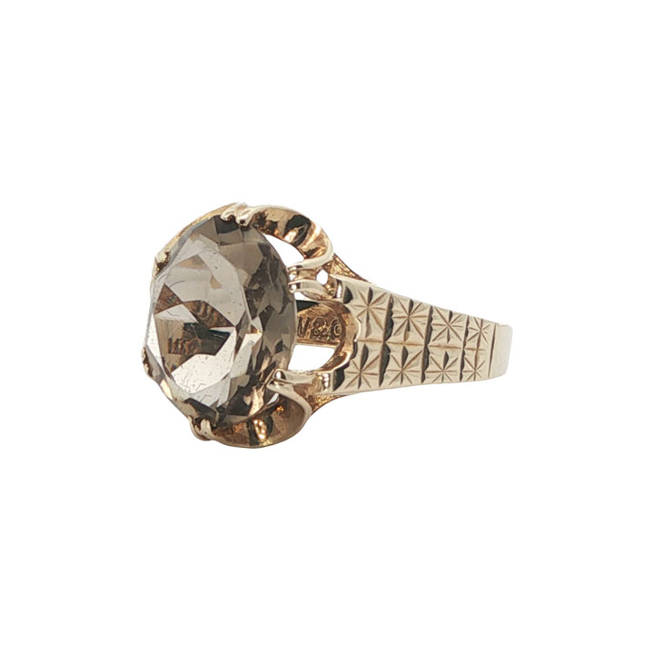 Vintage 9ct Yellow Gold Smoky Quartz Ring dated 1978