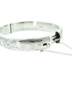 Vintage Half Engraved Sterling Silver Bangle Chester 1962