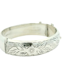 Superb quality, as you would expect, this vintage Harrods of London hinged bangle is beautifully crafted in sterling silver is dated 1968. With its beautifully engraved floral design, it captures the timeless elegance of 1960s jewellery.