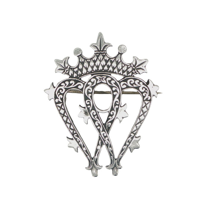 A beautifully crafted piece of Scottish heritage, this vintage sterling silver Luckenbooth brooch was made in the mid-1970s by renowned silversmith John Hart of Iona. Exquisitely detailed and rich with symbolism, it is a wonderful example of traditional Scottish jewellery.