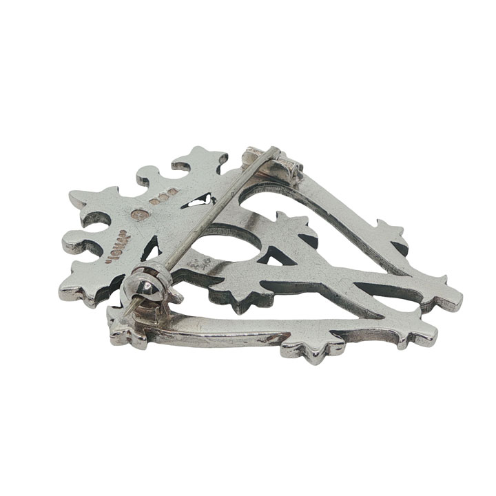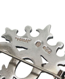 This brooch has been carefully cleaned and professionally polished, restoring its beautiful silver sheen and highlighting the intricate patterns John Hart was celebrated for.
