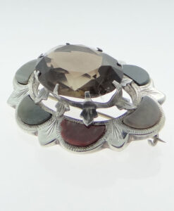 Vintage Scottish Silver Agate and Smokey Quartz Brooch