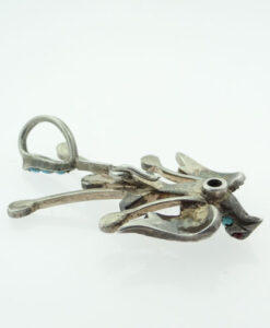 This is a fabulous Silver Turquoise, Seed Pearl and Garnet Swallow Pendant.