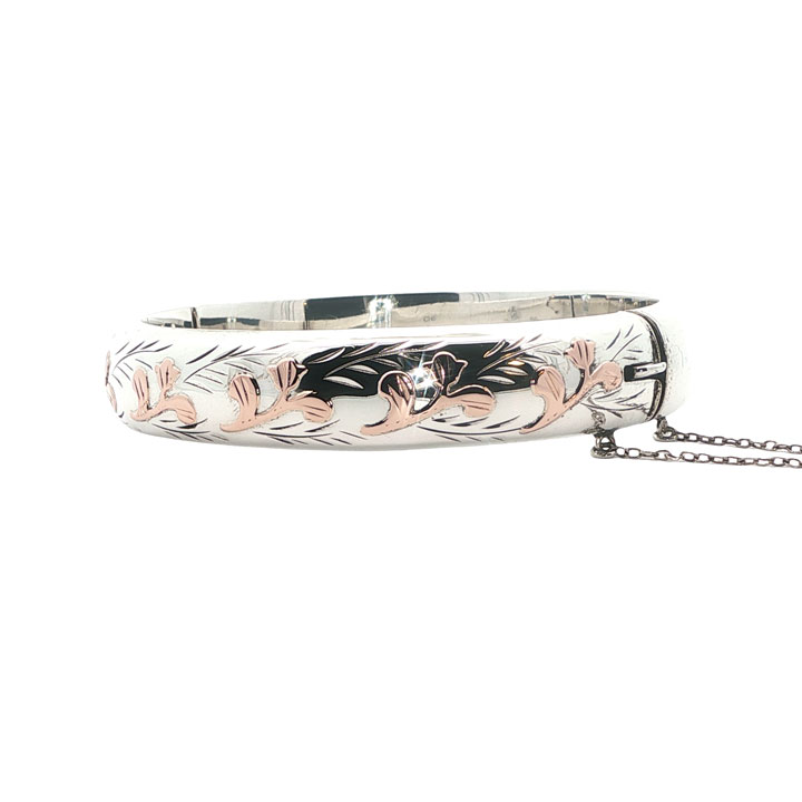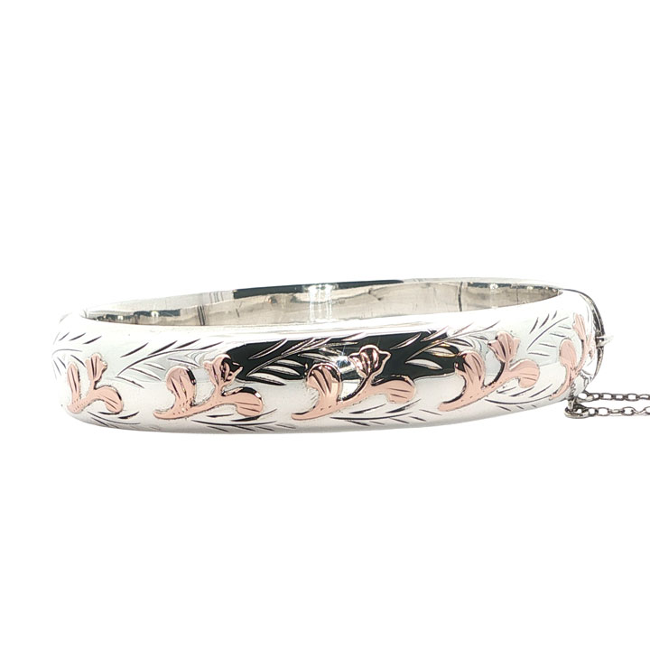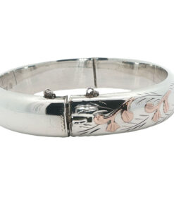 Vintage Sterling Silver and 9ct Gold Tulip Bangle – Birmingham 1976