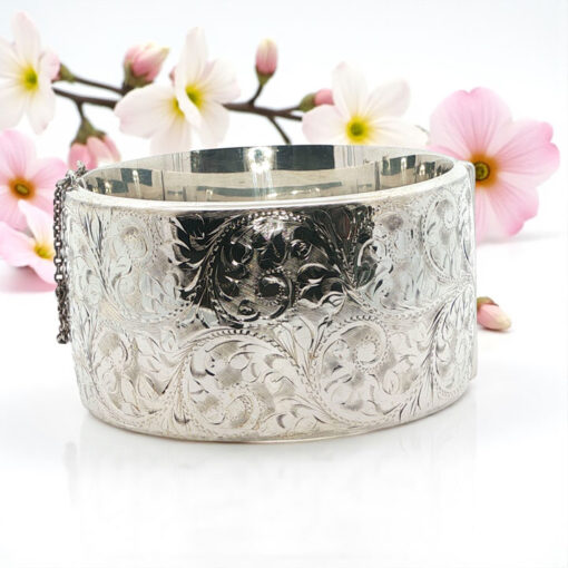 Vintage 1977 Solid Sterling Silver Wide Engraved Bangle – L&Co Birmingham